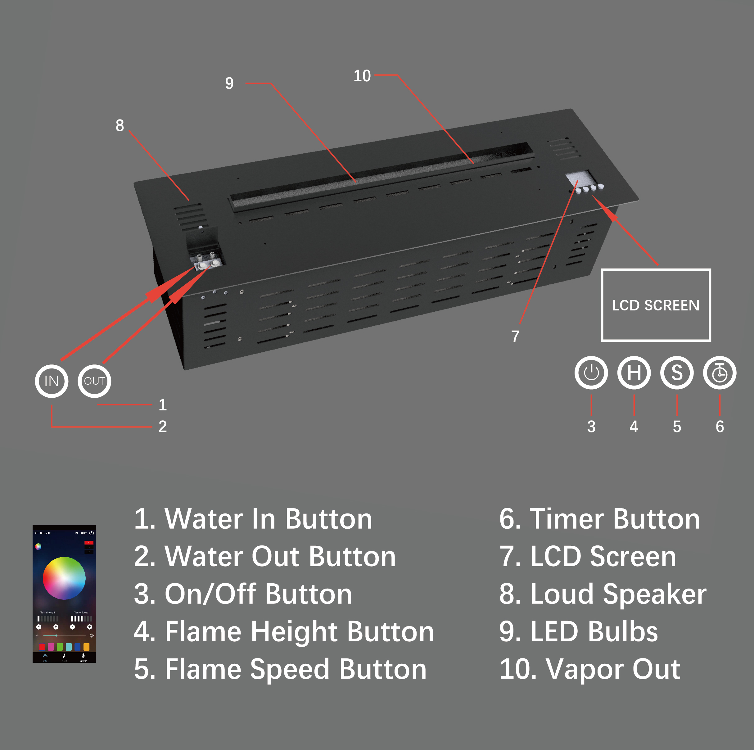 3.Flame Height – 7 Level Adjustable